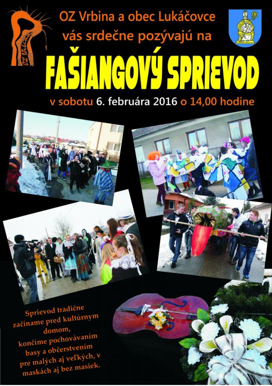 OZ Vrbina a obec Lukáčovce Vás srdečne pozývajú na FAŠIANGOVÝ SPRIEVOD, 6. februára 2016 (t.j. v sobotu) o 14:00 hod.