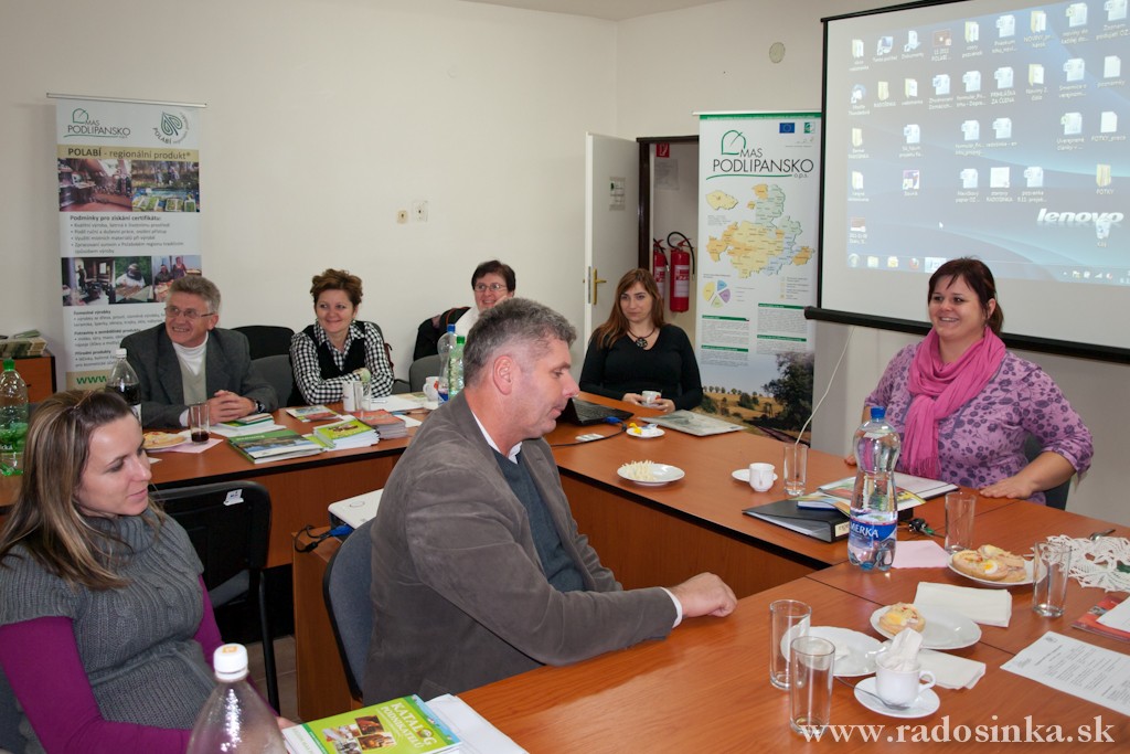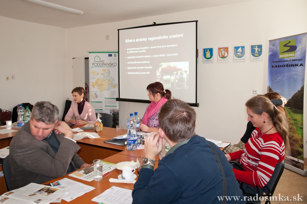 Dňa 9. novembra 2011 sa v priestoroch kancelárie OZ MR RADOŠINKA uskutočnilo pracovné stretnutie k projektom spolupráce - Zavádzanie regionálneho značenia produktov na nitrianskom vidieku - tvorba regionálnej značky a systému kvality, na tému "Praktické skúsenosti s implementáciou regionálnej značky". Stretnutie sa uskutočnilo za účasti zástupcov Miestnej akčnej skupiny Podlipansko, o.p.s., ktorá je regionálnym koordinátorom značky - POLABÍ regionální produkt a předsedkyně a národní koordinátorky Asociace regionálních značek, o.s. (ARZ) v Českej republike.