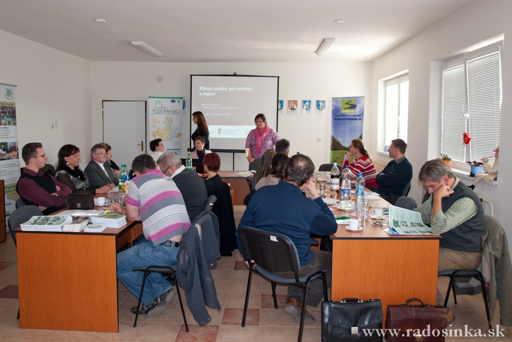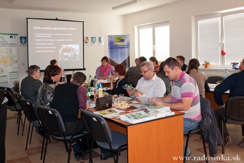 Dňa 9. novembra 2011 sa v priestoroch kancelárie OZ MR RADOŠINKA uskutočnilo pracovné stretnutie k projektom spolupráce - Zavádzanie regionálneho značenia produktov na nitrianskom vidieku - tvorba regionálnej značky a systému kvality, na tému "Praktické skúsenosti s implementáciou regionálnej značky". Stretnutie sa uskutočnilo za účasti zástupcov Miestnej akčnej skupiny Podlipansko, o.p.s., ktorá je regionálnym koordinátorom značky - POLABÍ regionální produkt a předsedkyně a národní koordinátorky Asociace regionálních značek, o.s. (ARZ) v Českej republike.