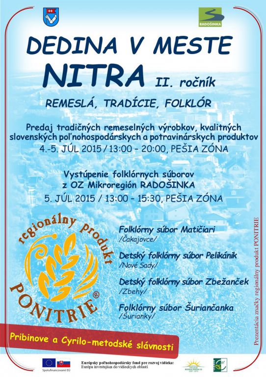 Za podporu držiteľov značky regionálny produkt PONITRIE a folklórnych súborov z OZ Mikroregión RADOŠINKA Ďakujeme Mestskému úradu v Nitre.