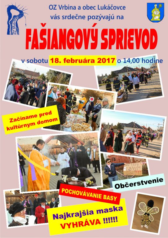 OZ Vrbina a obec Lukáčovce vás srdečne pozývajú na Fašiangový sprievod.