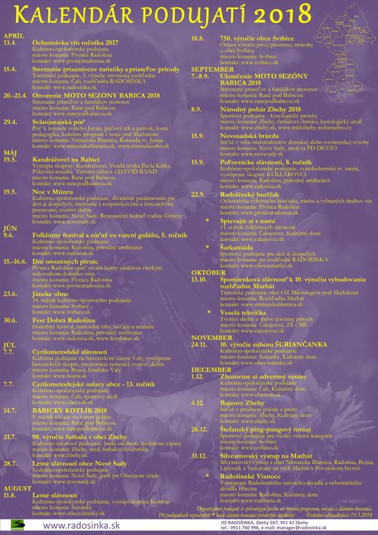 Kalendár podujatí obcí, združení, klubov, organizácií a podnikateľských subjektov v územnej pôsobnosti OZ RADOŠINKA.