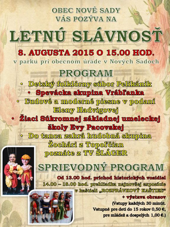 LETNÁ SLÁVNOSŤ v Nových Sadoch – slávnosť hudby, tanca, spevu a príjemnej zábavy.
