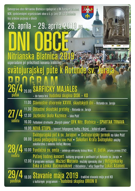 Prijmite srdečné pozvanie na Svätojurajskú púť k Rotunde sv. Juraja a podujatie Dni obce Nitrianska Blatnica.
