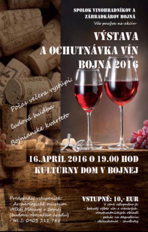 Pripravené pre Vás bude nielen dobré vínko z viacerých vinohradníckych oblastí, ale aj gurmánske špeciality a bohatá tombola v príjemnej atmosfére, ktorú bude umocňovať ľudová hudba Bojnianske kvarteto.